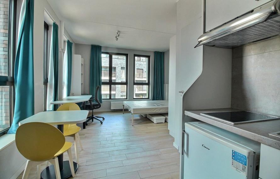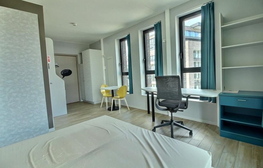 Studio double d'environ 23m² situé aux étages 1 à 6 d'une résidence-services construite et inaugurée en 2017 juste en face du campus Erasme/ULB à Bruxelles.