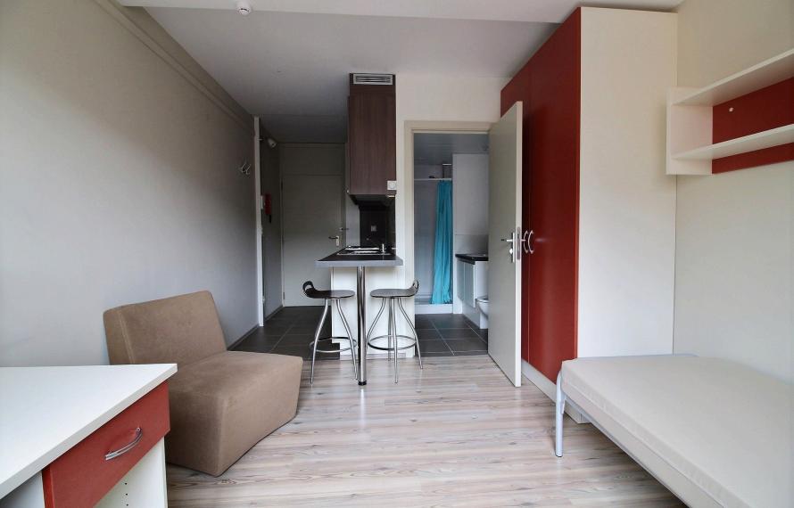 - Accès gratuit à des espaces communs/services: salle d'étude et espace loisirs/détente de 400m² (wifi), coin fitness, terrasse couverte avec coin barbecue, local vélos, buanderie, sauna, local poubelles, conciergerie (avec prêt de matériel)