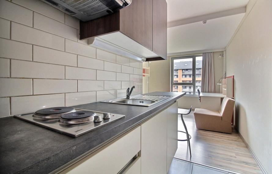 Studio single meublé de 22 à 26m² situé du rez-de-chaussée au 3ème étage (côté cour paysagère ou piétonnier) d'une résidence-services construite en 2008 en plein coeur de Louvain-la-Neuve.