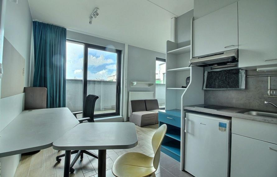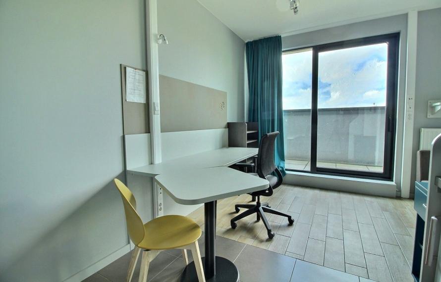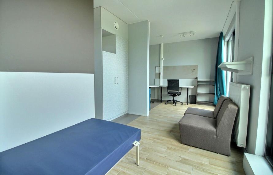Studio single d'environ 27m² situé aux étages 1 à 6 d'une résidence-services construite et inaugurée en 2017 juste en face du campus Erasme/ULB à Bruxelles.