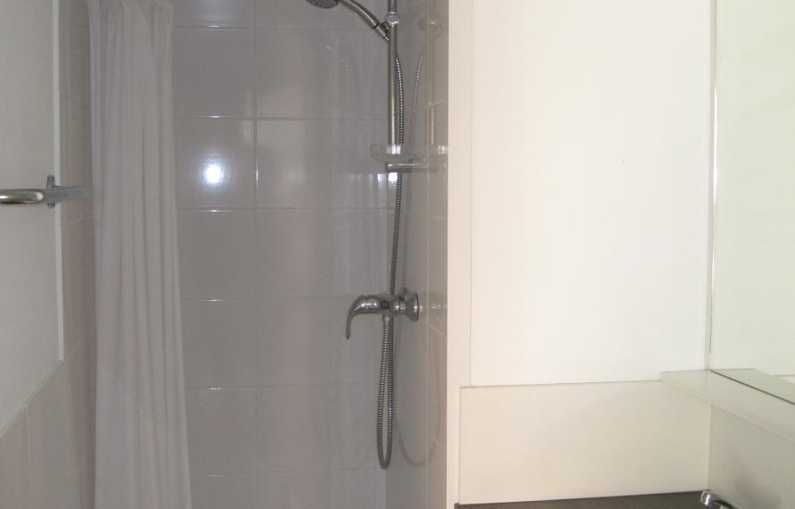- Sol mélaminé, cuisine semi-équipée (taques électriques, hotte, frigo), salle de douche avec WC, prises TV/Internet.