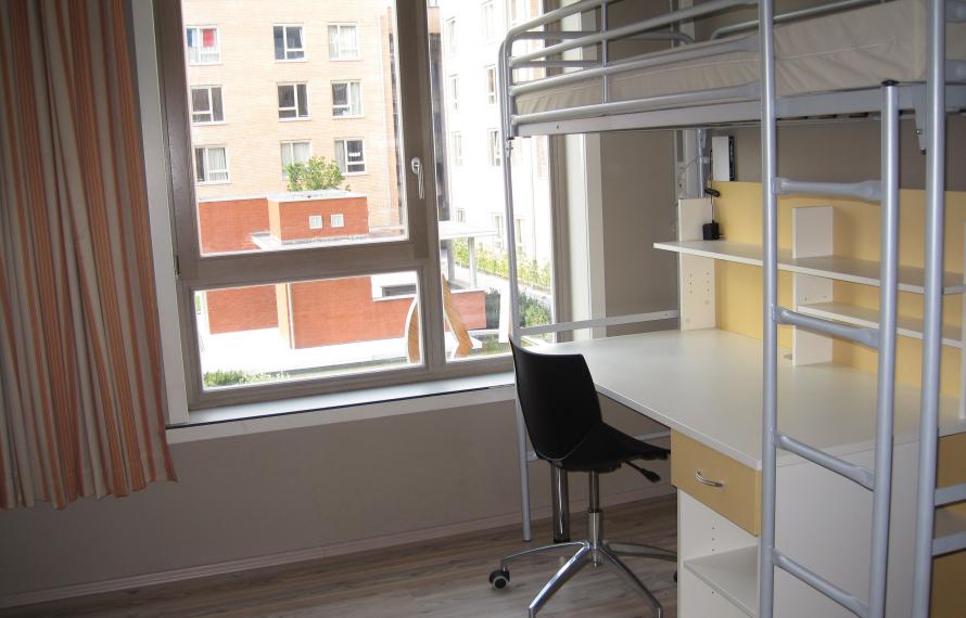 - Accès gratuit à des espaces communs/services: salle d'étude et espace loisirs/détente de 400m² (wifi), coin fitness, terrasse couverte avec coin barbecue, local vélos, buanderie, sauna, local poubelles, conciergerie (avec prêt de matériel)